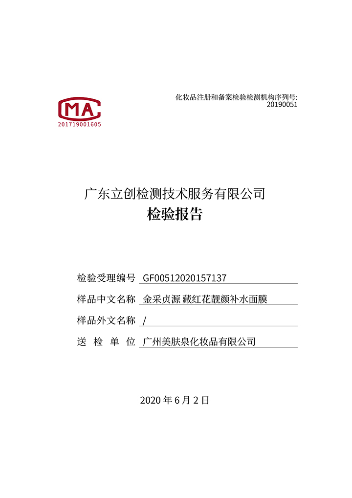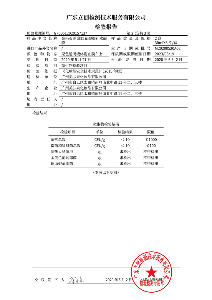 藏紅花深層修護(hù)面膜檢驗(yàn)報告
